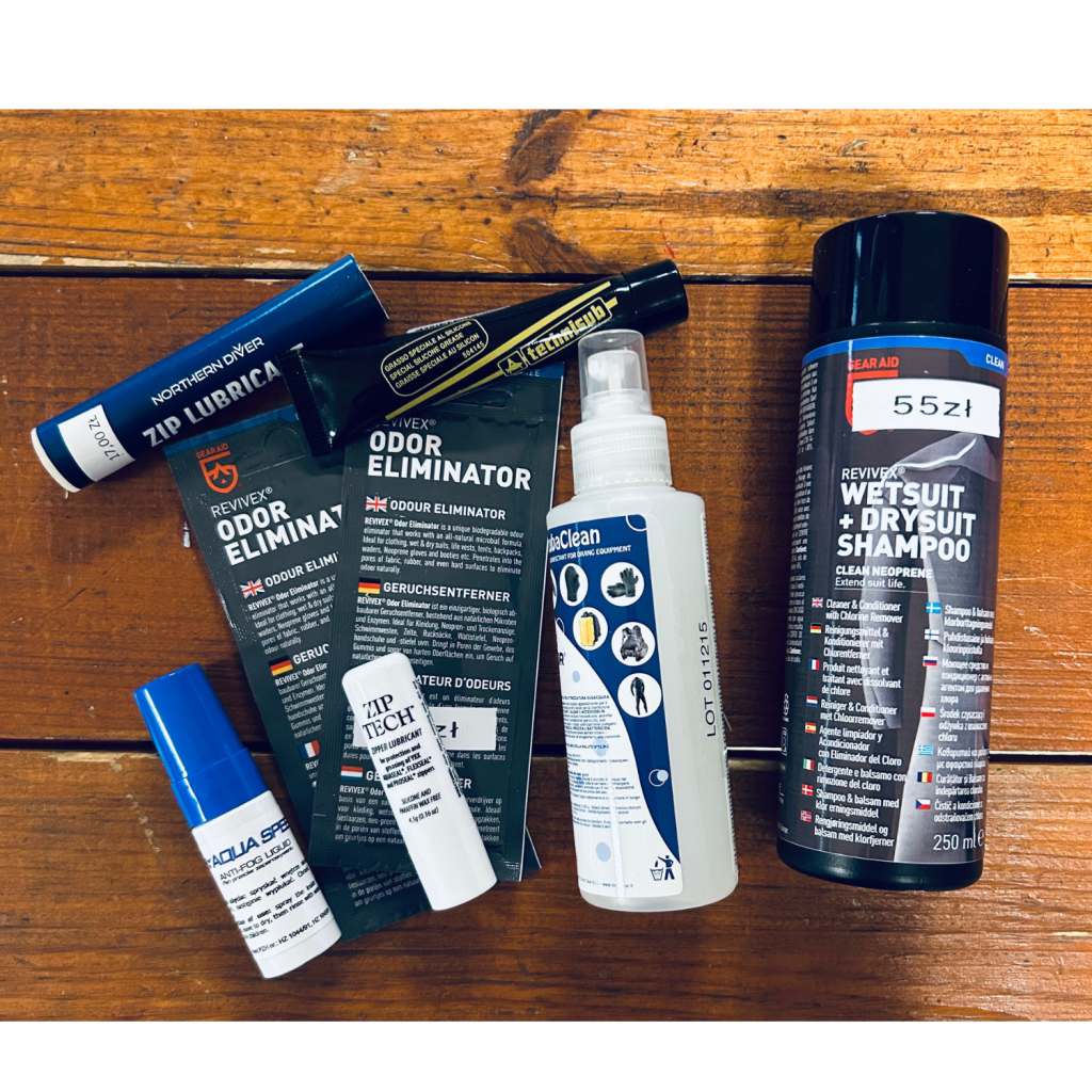 dedykowane środki czyszczące do sprzętu nurkowego (opcjonalnie).