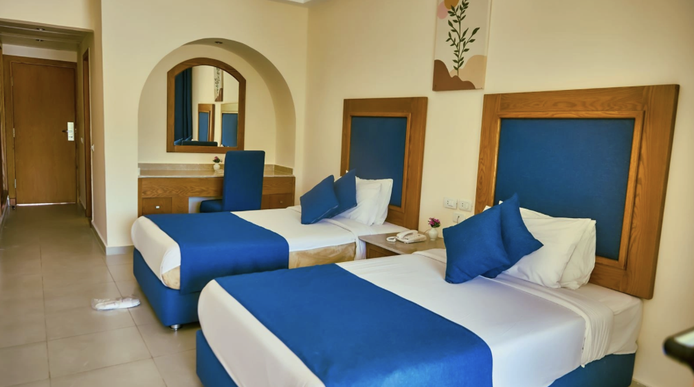 Zakwaterowanie w hotelu w formule All Inclusive – pyszna kuchnia, relaksujący klimat, basen, plaża i wygodne pokoje. Idealne miejsce na odpoczynek po nurkowaniu. Zlokalizowany w miejscu gdzie morze styka się z podnóżem gór Synaj.